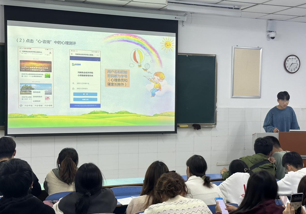 随后,还向各班心理委员们介绍了心理测评的目的并讲解了心理测评的具体流程,这有益于心理委员们进行心理健康反馈,及时关注同学们心理健康状况,发现并解决同学们心理健康方面的问题。