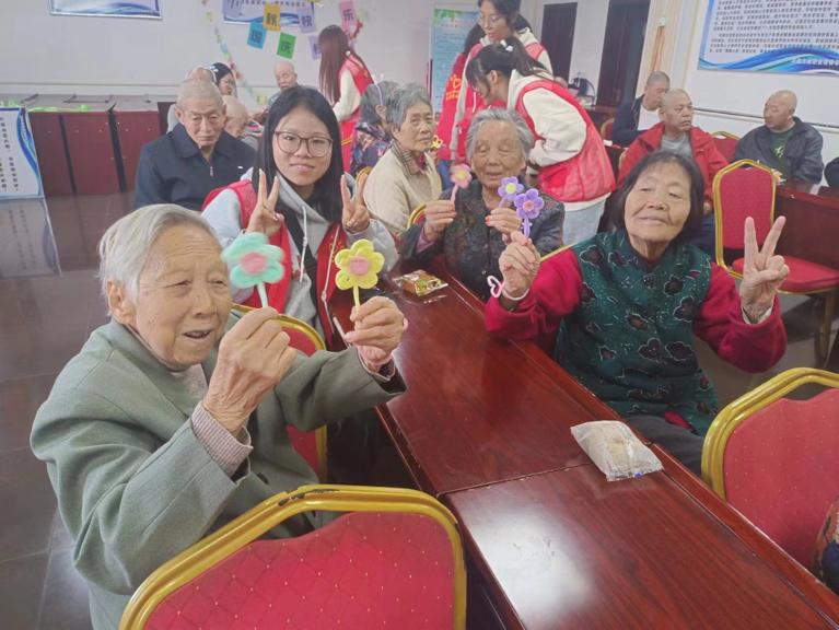 在重阳节即将来临之际,必赢官网志愿者们化身老年人的贴心小棉袄,为老人送去温暖与关怀。首先,志愿者代表为老人们大致介绍了本次活动的大致流程,并充分表达了志愿者们对他们的关爱和尊重。接下来志愿者们纷纷上台,献上了动人的歌声,讲述了红色经典故事,志愿者们热情地邀请在场的老人们一起唱歌、唱戏,现场活动氛围热烈。最后,志愿者们与老人共同进行了手工编织,五颜六色的扭扭棒经过折叠和编织,变成一朵朵温情的小花在手间绽放,那朵朵小花不仅温暖了老人们的心灵,也让志愿者们产生了情感共鸣。