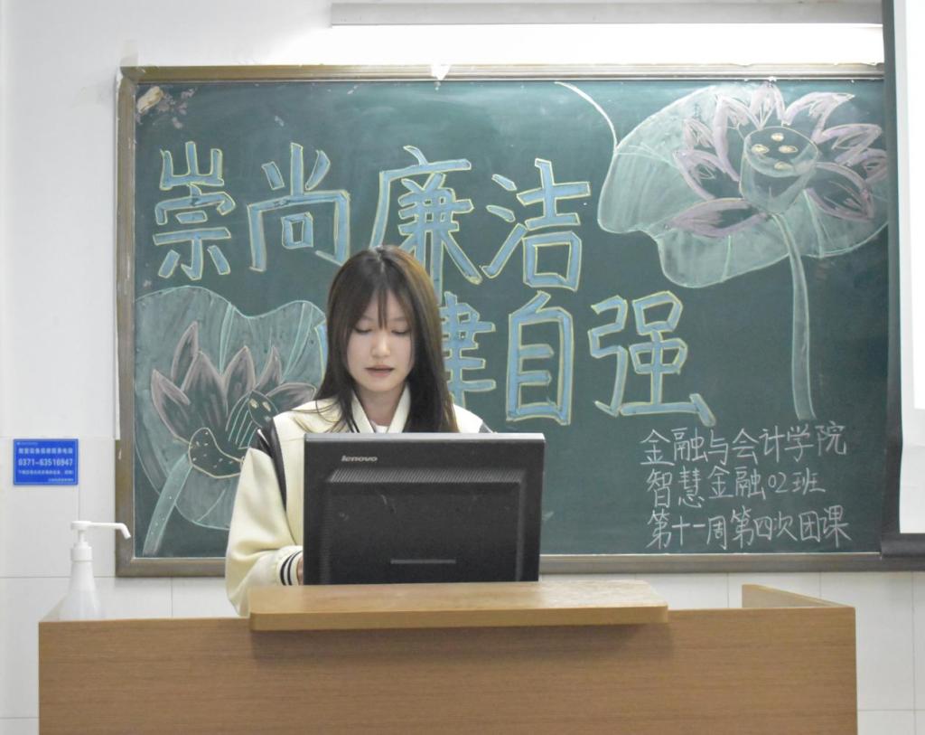 随着团歌的嘹亮响起,各团支部组织的团课相继开展。在本次团课中我们主要邀请学生代表分享有关廉洁的小故事,让同学们在每一个小故事中都能得到感悟,并认识到廉洁的重要性。此外我们还开展了与廉洁和自律相关的游戏,充分调动了同学们的积极性,使同学们都积极参与进来,团课氛围十分活跃。通过本次团课同学们了解了廉洁并培养了自律意识,为做好自律自强打下了坚实的基础。