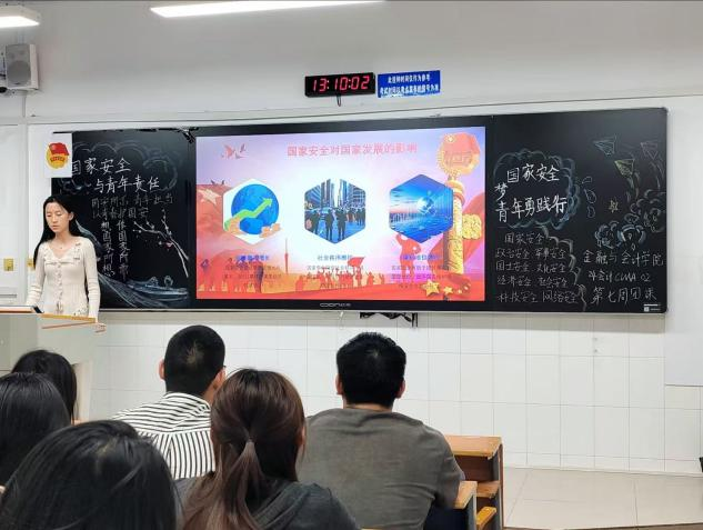 伴随着嘹亮的团歌声,团课活动正式开始。首先,团支书借助一段国家安全宣传视频拉开序幕,直观展现危害国家安全行为带来的严重后果,让大家深刻认识到国家安全与个人命运息息相关,激发团员青年对国家安全的关注。紧接着,团支书详细阐述总体国家安全观的丰富内涵,从政治安全到经济安全,从国土安全到网络安全等多个领域逐一解读,并结合时事热点,让团员青年清晰了解国家安全所涵盖的广泛范畴以及各领域面临的现实挑战。随后,团课进入热烈的讨论环节,团员青年们围绕“日常生活中如何维护国家安全”踊跃发言。有的同学提到要谨慎对待网络信息,不随意传播敏感资料;还有同学认为在与境外人员交往时需保持警惕,不泄露国家机密。大家各抒己见,现场气氛热烈。最后,团支书带领全体团员青年庄严宣誓,承诺自觉维护国家安全,将国家安全意识融入日常生活,以实际行动践行青春担当。