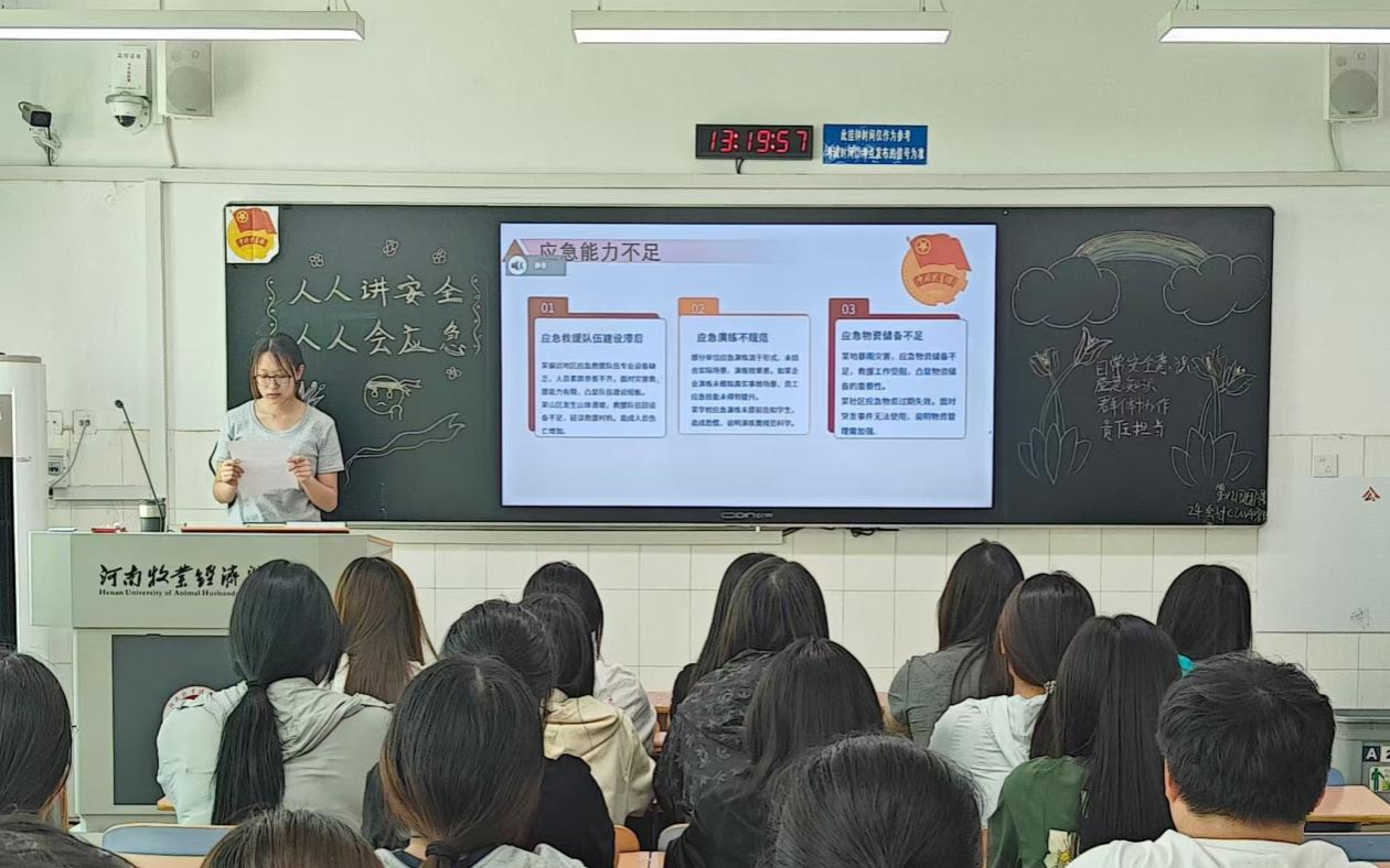 伴随着嘹亮的团歌声,团课正式开始。首先,团支书带领团员青年深入学习习近平总书记关于防灾减灾救灾重要指示批示精神,从思想层面深刻领会安全工作的重要意义,强化责任担当意识,为后续的学习内容筑牢思想根基。随后,就遇到极端天气、自然灾害等问题时如何自救进行了科普。通过图文并茂的展示、生动真实的案例,让团员青年们深入学习,并针对防灾减灾常识展开深入讲解,详细介绍在不同自然灾害场景下的应对方法,还分享了如何识别生活中的事故隐患,如老化的电线、堵塞的消防通道等。最后,各团支部组织团员青年进行讨论与交流,分享自己在生活中遇到的安全问题及解决办法,进一步加深对所学知识的理解与运用。