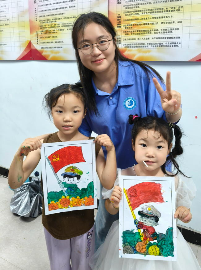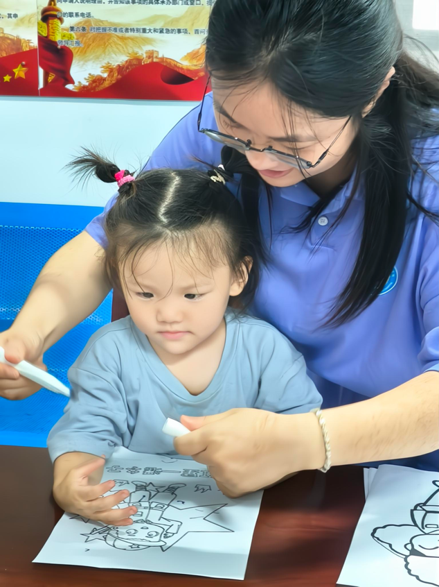 志愿者团队设置了“红色人物涂鸦”“普通话词语挑战”等特色环节。孩子们在志愿者的引导下,为雷锋、李翔梧等英雄人物画像涂色,同时聆听英雄事迹的普通话讲解,在创作中深化对红色精神的认知。志愿者结合画像内容,讲述“奉献”“勇敢”等精神内涵,帮助孩子们理解词语意义与文化传承的关联。此外,志愿者们还将印有“团结”“热爱”“奉献”等词汇的彩色气球作为道具,让孩子们随机选取并用普通话造句。现场还设置了即时指导环节,志愿者对发音进行规范纠正,鼓励孩子们大胆表达,在轻松氛围中提升普通话应用能力。