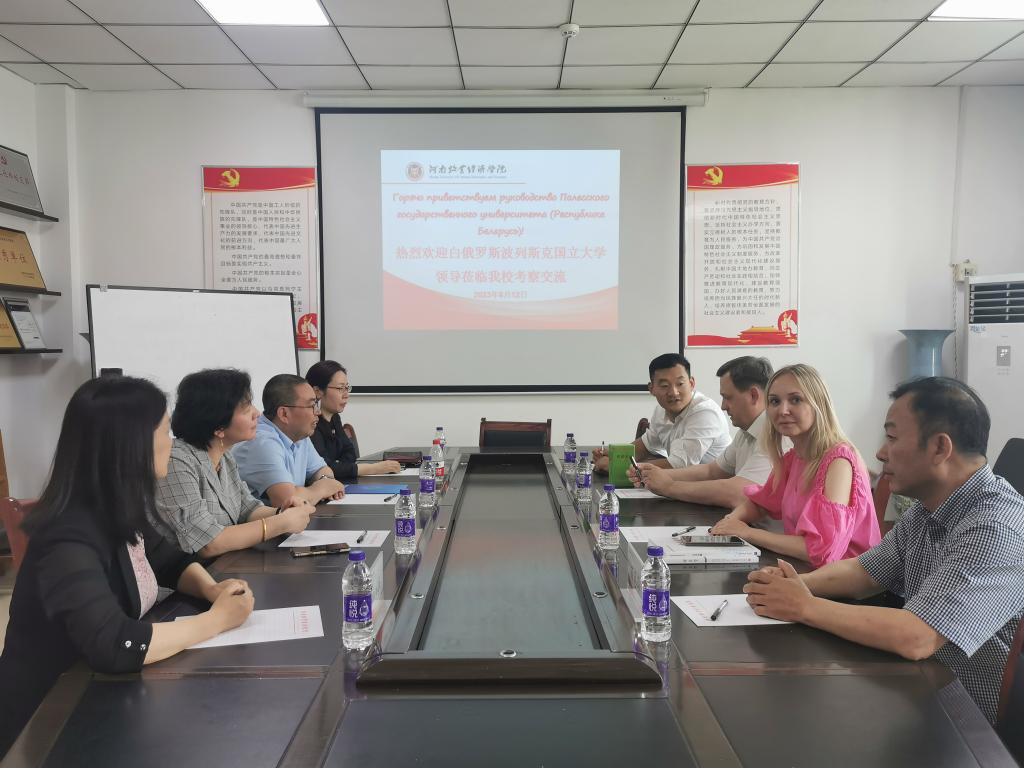 2023年6月12日,白俄罗斯共和国波列斯克国立大学校长杜奈·瓦列里·伊万诺维奇一行4人莅临必赢官网考察交流,必赢官网院长黄良杰、副院长王培玲、邵翠丽和崔海红出席了交流活动。