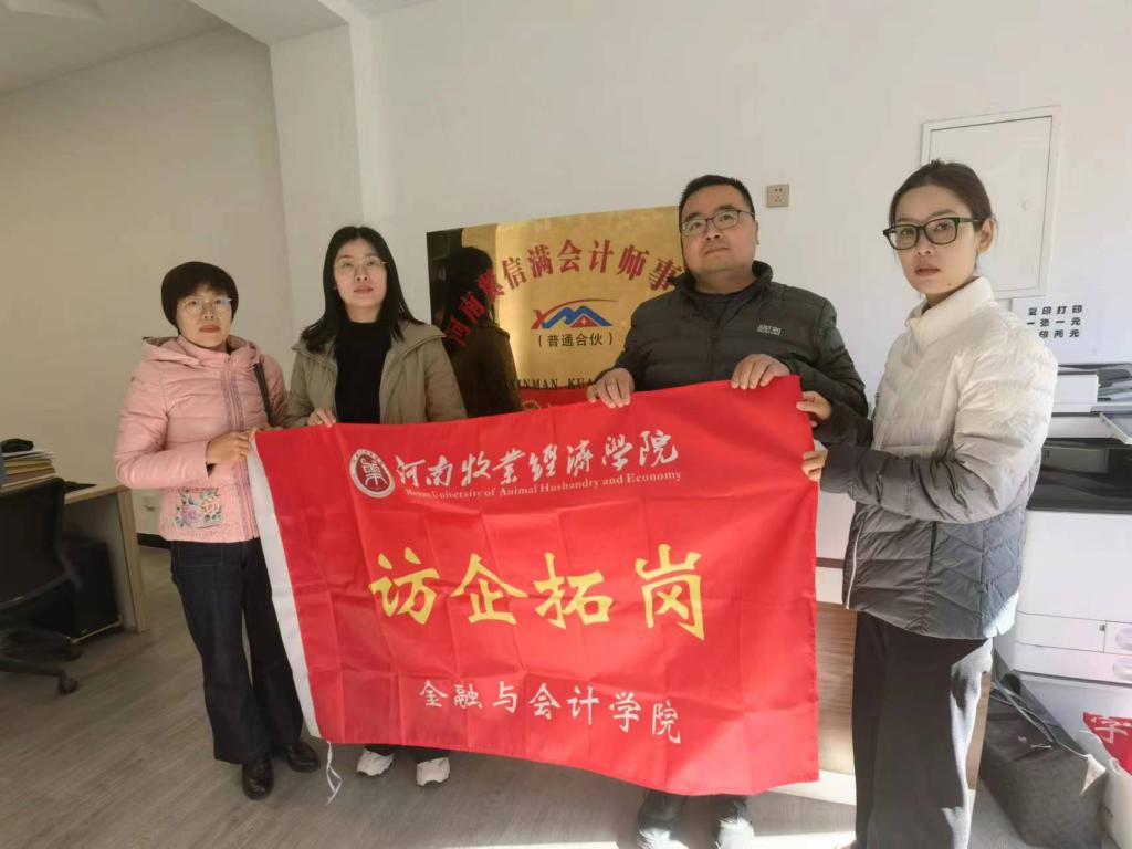 11月23日,必赢242net官网财务管理教研室主任苗霞博士、副教授张宝丽老师、汪萍博士一行3人走进河南翼信满会计师事务所,开展访企拓岗促就业、双百助企促发展活动。