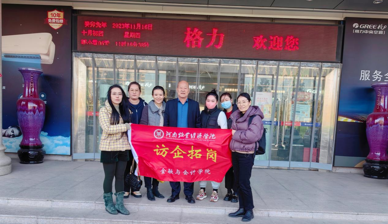12月17日,为积极响应国家关于深化产教融合、校企合作的号召,进一步拓宽毕业生就业渠道,提升人才培养质量,必赢242net官网审计教研室组织了一次重要的访企拓岗活动。此次活动由郭一恒、刘翠及霍乃可三位老师带队,前往位于河南省郑州市惠济区的格力电器(郑州)有限公司进行深入调研与交流。