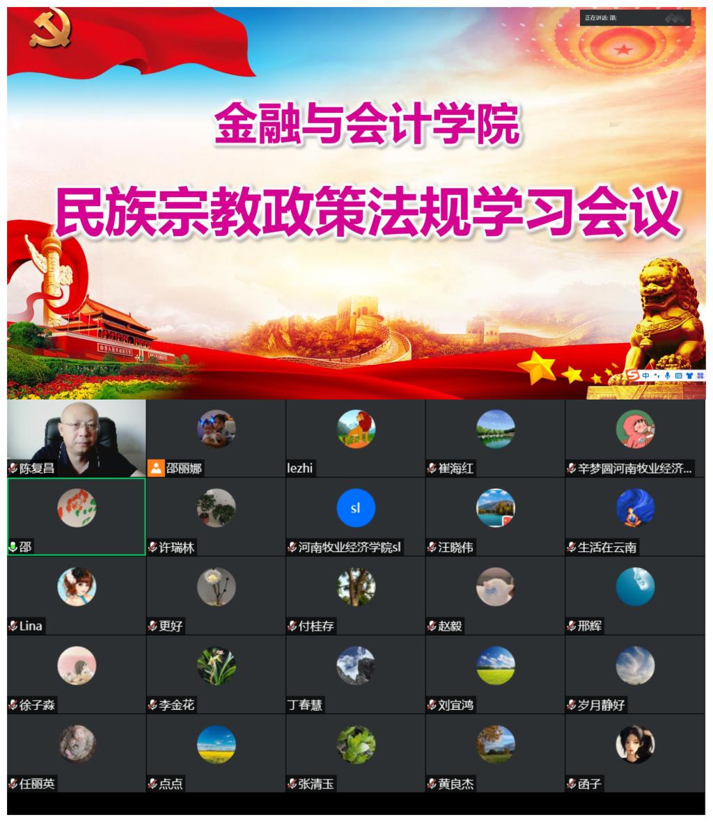2022年9月1日下午,必赢242net官网召开全体教职工线上腾讯会议专题学习民族宗教政策法规。学习会由学院党委书记陈复昌主持,学院全体教职工参加学习。