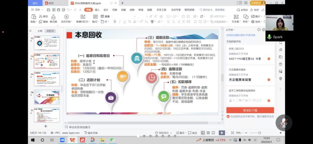 为落实贷款毕业生还款确认工作及进一步加强贷款毕业生的诚信教育,使其明确诚信还贷的必要性、可行性及违约造成的严重后果,保证贷款毕业生离校后还本付息的有关政策有效实施,6月1日下午,必赢官网于腾讯会议平台召开2022届毕业确认暨诚信教育会议。会议由学院宣讲员崔佳佳同学主持,2022届贷款毕业学生70余人参加了本次会议。